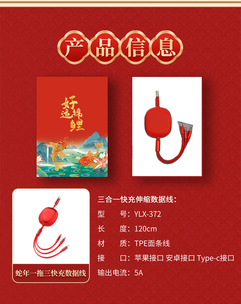 遥里逊好运锦鲤数据线礼盒YLX-372-1