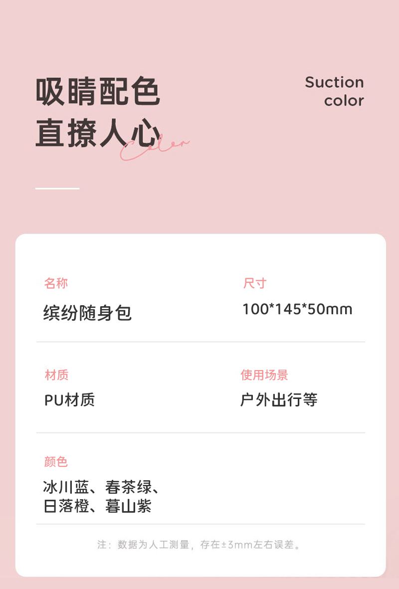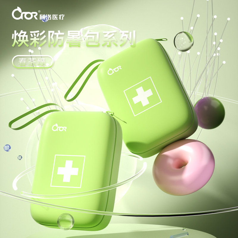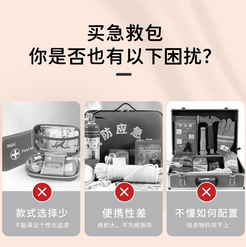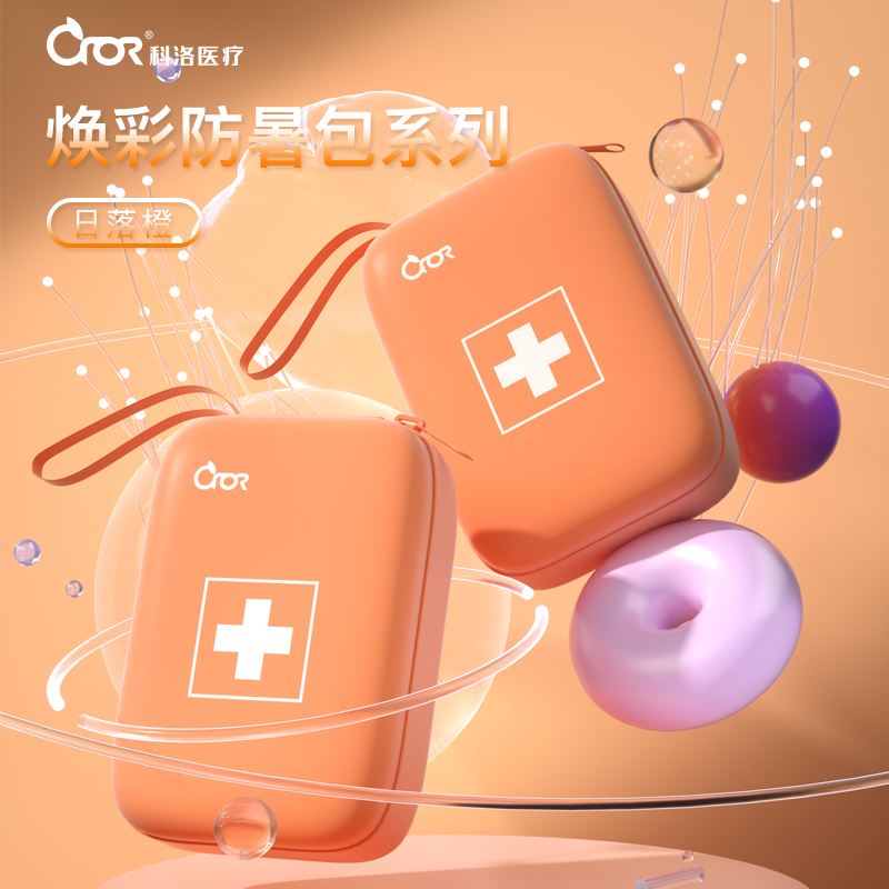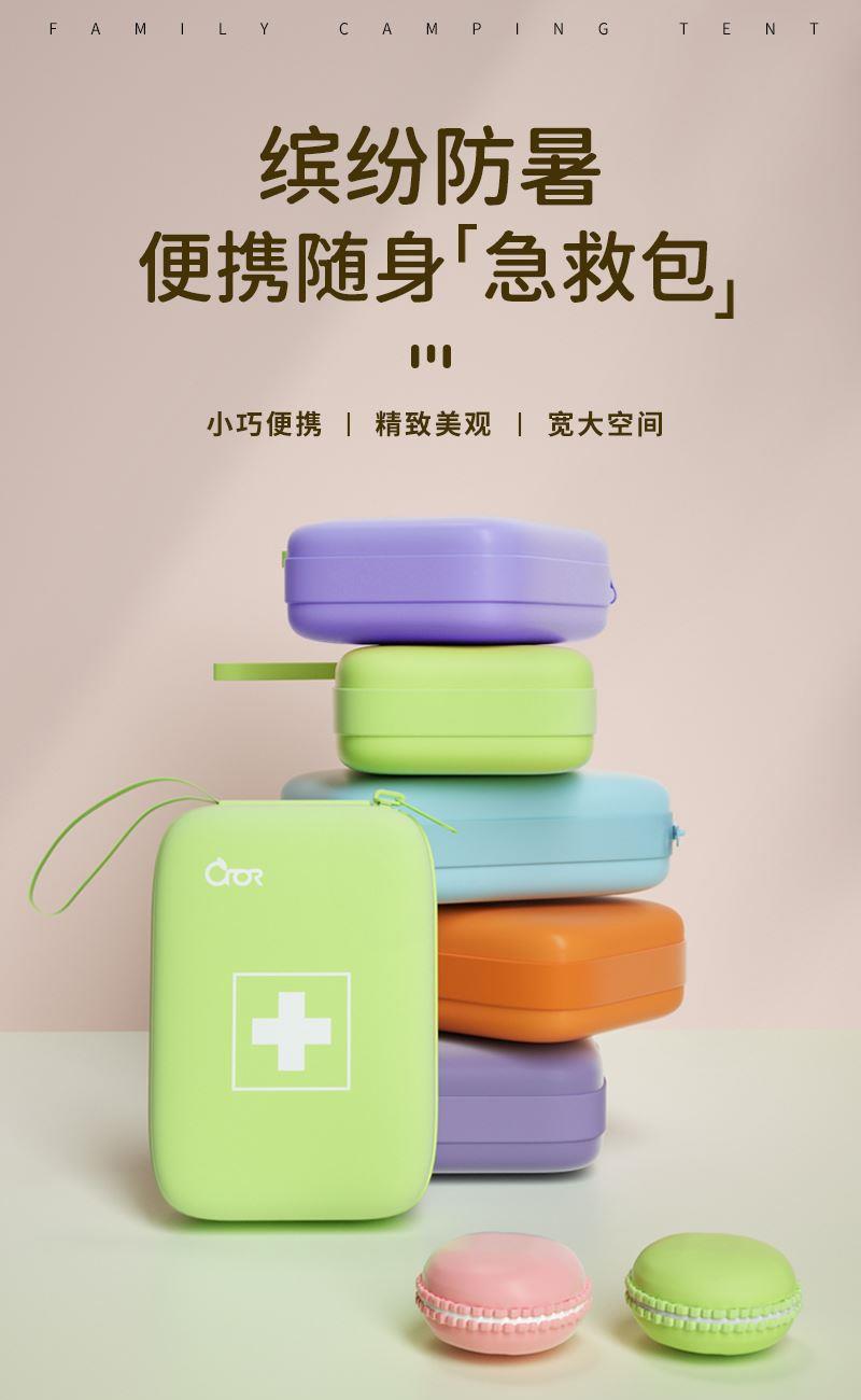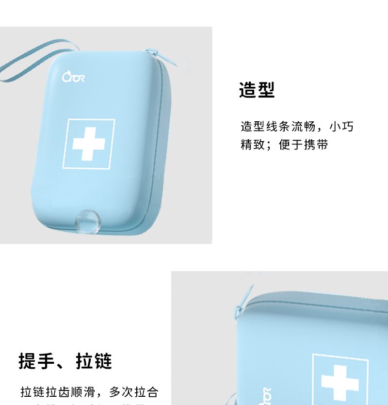 产品材质:PU革覆EVA 产品规格:145*100*45mm 产品颜色:暮山紫、冰川蓝、日落橙、春茶绿 产品配置:含4大类14种急救用品