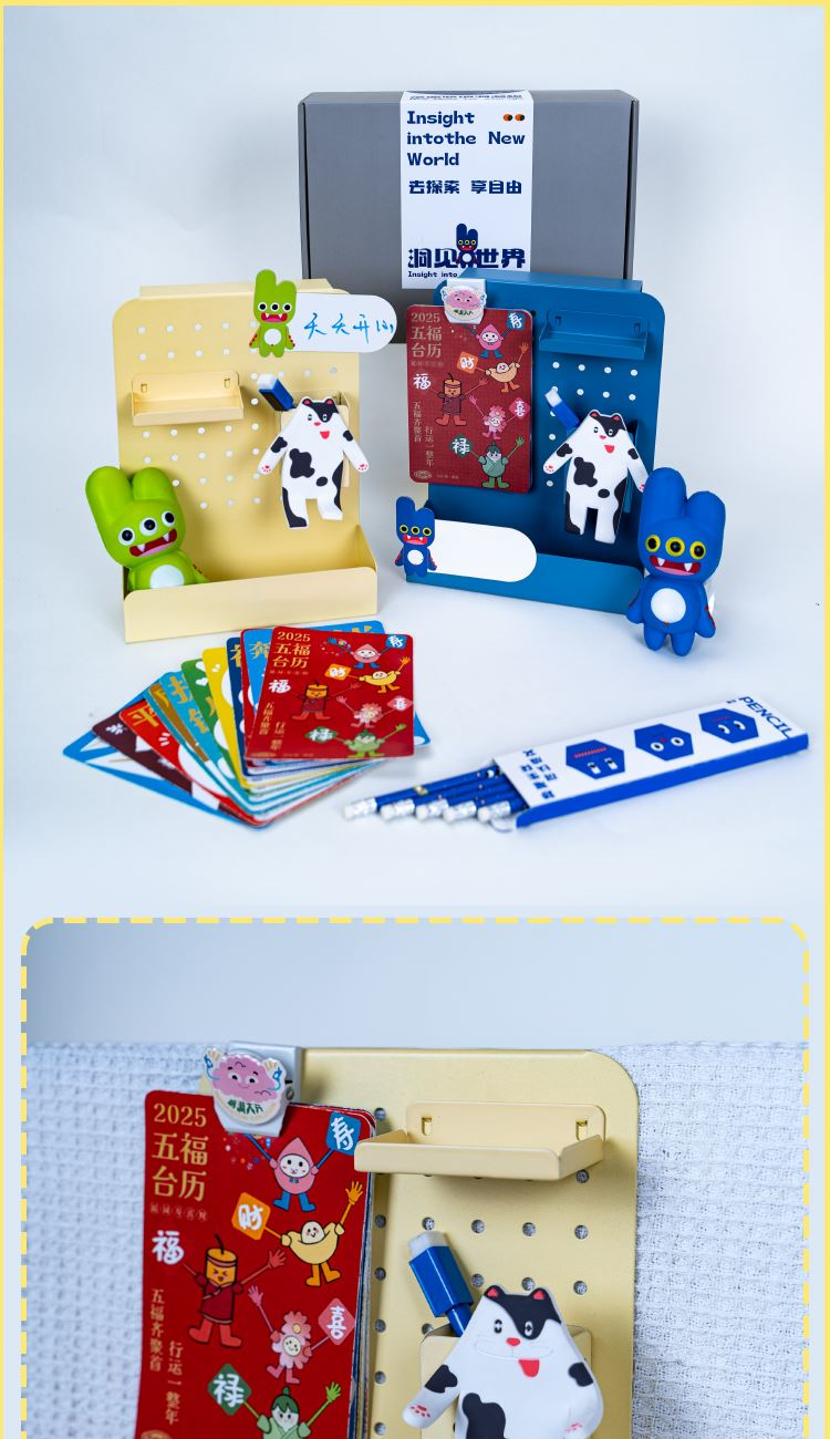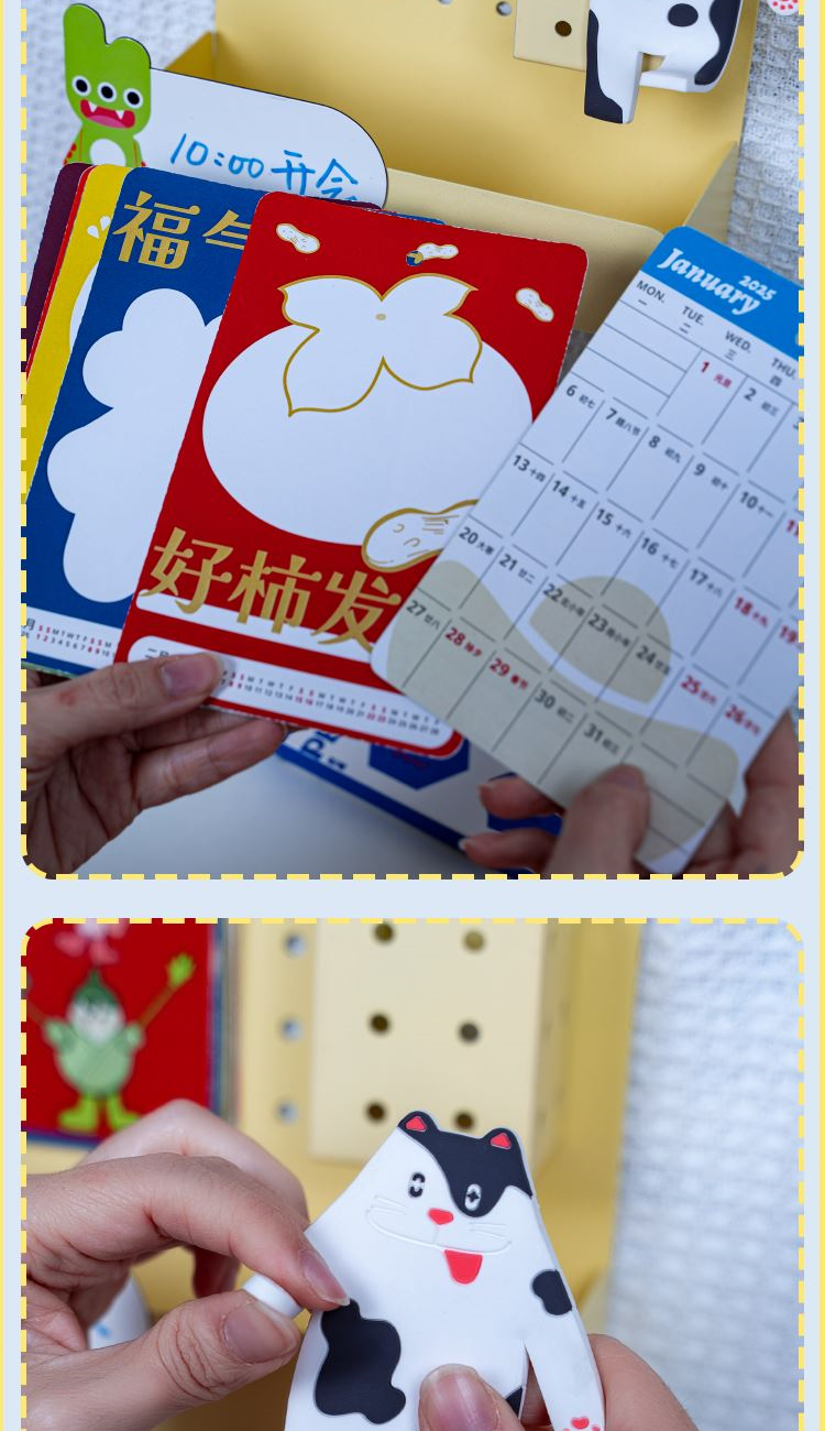 贪吃猫文创新年经典蓝黄台历洞洞板