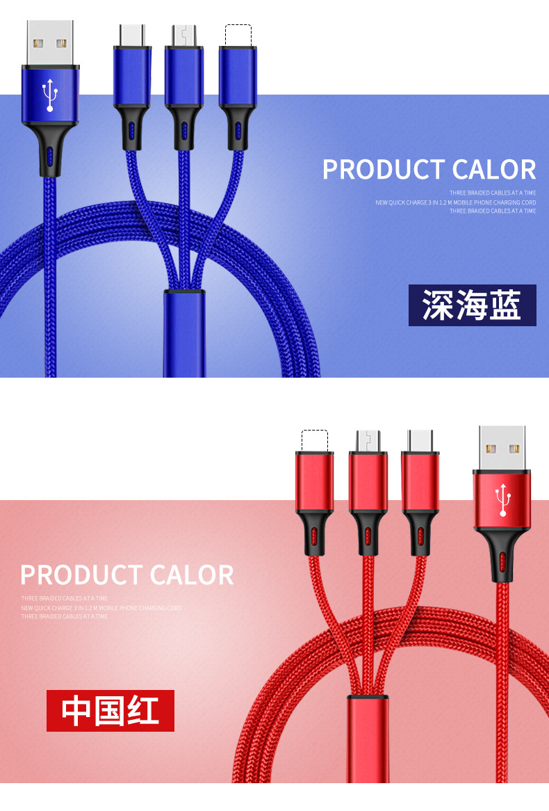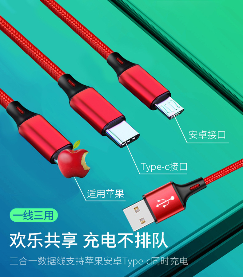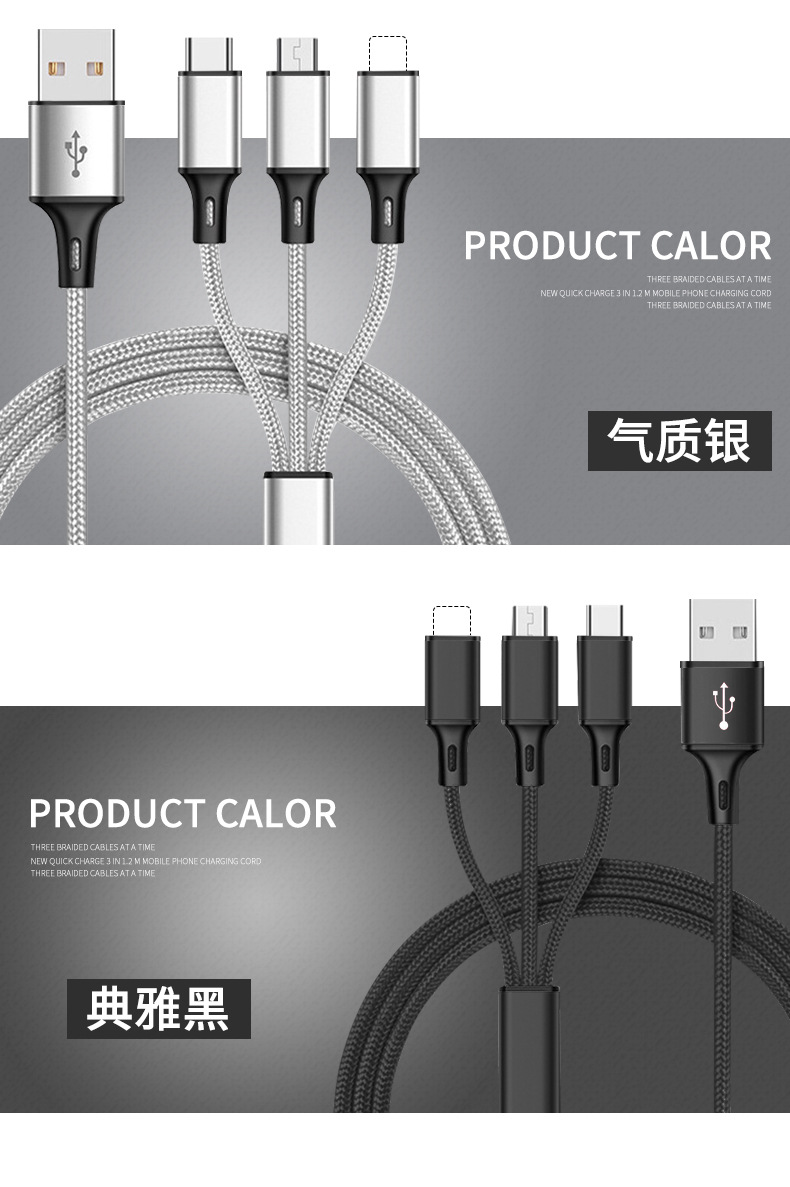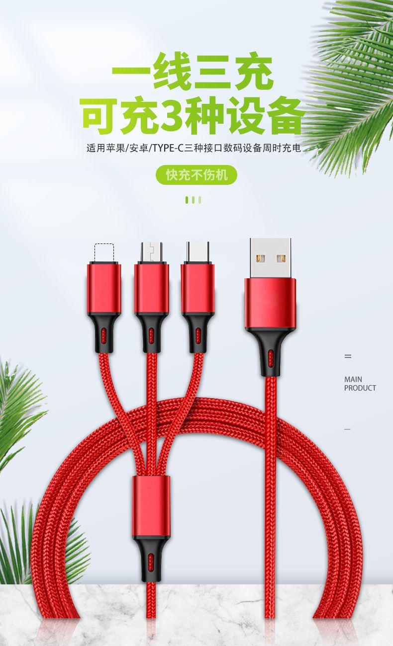 长 度:120cm 材 质:合金外壳+编织线身+铜丝 颜 色:中国红 宝石蓝 咖啡 骑士黑 墨蓝 接 口:苹果接口 安卓接口 Type-c接口 功 能:充电 输出电流:2A 产品净重:36.5g